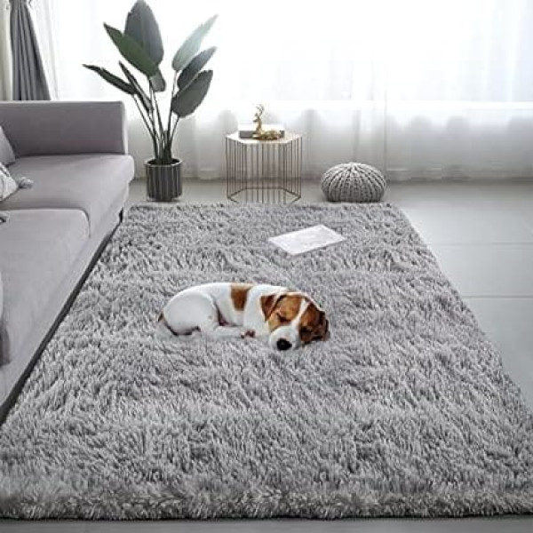 VOFUSHON Living Room Deep-Pile Rug, Shaggy Hallway Runner Rug, Modern, Fluffy, Soft Rug, Large for Living Room Decoration/Bedroom/Children's Room (200 x 300 cm, Grey)