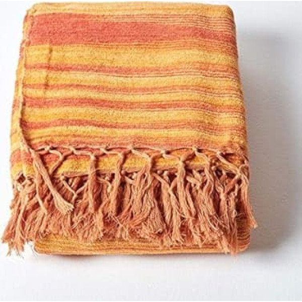 Pleasantly soft cotton blanket with fringes. Size: approx. 150 x 200 cm. Colour: orange. The durable bedspread is hand-woven from 100% cotton and fluffy soft. The colour gradient creates a warm and cosy atmosphere, and thanks to the subtle design, this blanket fits on any couch and chair. Ideal as a stylish throw for sofa or bed, as a home blanket or for snuggling up on the couch. The blanket is machine washable up to 40 degrees (we recommend gentle wash). Available in light green, orange, rust orange and beige as well as in two different sizes. In the Homescapes online shop you will find many other ideas for your home: combine your chenille bedspread with matching pillowcases, curtains or a rug from the same range (sold separately).
