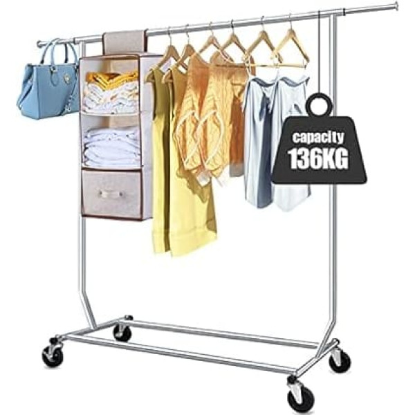 Camabel Metal Clothes Rack with Wheels Maximum Load 136 kg Adjustable Length 130-189 cm Heavy Duty Chrome-Plated Stainless Steel Wheels Sturdy Clothes Rail Extendable Clothes Hanger with Brake