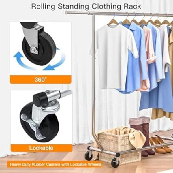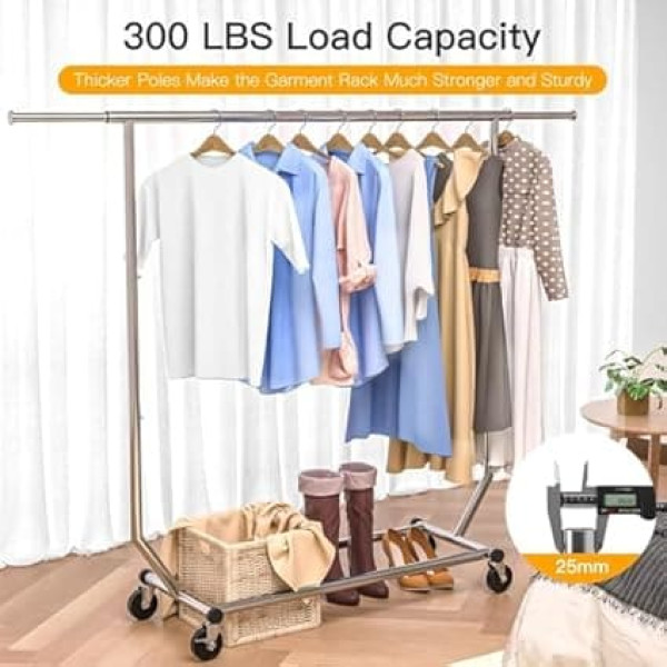 HEAVY METAL SHACKLE This product is made of thickened metal and can hold up to 300 lbs. The clothes rack is equipped with extremely durable 4 all-direction wheels (2 with parking brake) that allow it to move flexibly or stay in place. Adjustable rod: retractable length 130-189 cm, adjustable height 166-180 cm. Convenient for hanging shirts, long skirts and dresses. Simple and stylish appearance: thickened metal + fully galvanized surface, making the product surface smooth and elegant without rust. EASY INSTALLATION No additional tools are required. Insert the hose into the connector and finish it in minutes. You can fold it up when not in use, reducing storage space. CUSTOMER CARE We strive to provide first-class products for you and provide you with impeccable customer care. Don't wait any longer and enjoy your ideal products today!