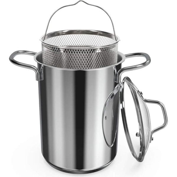 Perfect kitchen aid: with the practical asparagus cooking pot, asparagus cooking is child's play. Simply pack asparagus into the insert, fill the pot with water, boil and then pull the basket out of the water. Versatile: in addition to asparagus, you can also prepare other foods in the pot. Pasta, potatoes or any kind of vegetables are particularly suitable here. Cooking has never been easier! Practical design: thanks to the size of the cooking pot, you do not have to cut asparagus or spaghetti in half. The fine mesh strainer can be easily removed thanks to the handle and is ideal for draining asparagus or pasta. For all cooking surfaces: Both cooking pot and basket are made of high-quality stainless steel. Therefore, the pot can be used on all standard cooking surfaces, including induction. Easy to clean: the pasta pot can be easily placed in the dishwasher for cleaning.