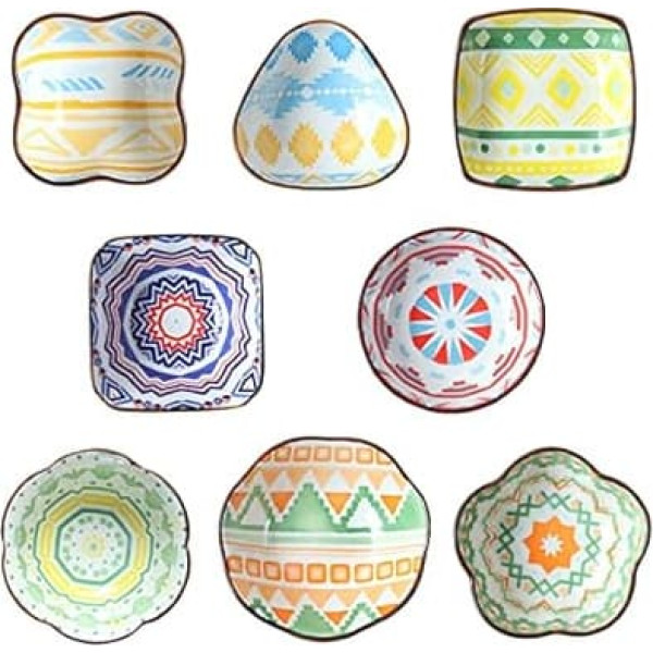 fanquare 8-Piece Porcelain Dip Bowls, Dessert Bowls, Colourful Bohemian Serving Bowls for Sauces, BBQ Sauce, Ice Cream, Dessert, Fruit, 9 cm