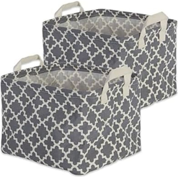 DII CAMZ38324 PE Coated Cotton/Poly Laundry Basket, Blend, Grey Lattice Pattern, Small Bins