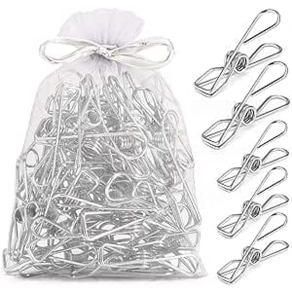 STURDY AND DURABLE - I bet you have more failed and broken wood/plastic clothes pegs than you can count Stop being frustrated and start with our metal clips. They will not come off like other designs and will last even with constant use and weather. 40 PCS & 2 SIZES - A pack of 30 medium clips (length of 2.2 inches) for washcloths/socks or hanging pictures and 10 larger clips (length of 2.6 inches) with stronger handle for heavier loads. All in one and lots for your money. MULTI-PURPOSE - Works perfectly for any size chip/cereal bags and packages of food in the fridge/freezer, hanging clothes, washcloths, notes, pictures, decorations and more. There are so many uses around the home that you can't even imagine what life would be without them. ORGANIZATION BAG: Comes with a nice bag to store the clips together. Next time you know where you find it and it doesn't take up much space. Great gift idea for family and friends. High quality product. Your concern will be done within 15 business hours. We would be very happy.