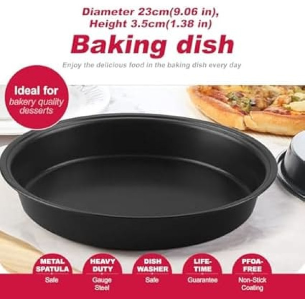 The complete 5 piece baking mould set includes 1 x cookie tray, 1 x square pan, 1 x loaf pan, 1 x round cake pan, 1 x muffin tray. Includes all the necessary baking moulds you need. This non-stick bakeware is made of high quality BPA-free material for everyday use. Strong and durable carbon steel cookware ensures safe and durable use. Our baked goods are heat resistant up to 250°C so they fit perfectly into your oven. All baking moulds and baking trays distribute an even heat. Non-stick baking sheet items are absolutely easy to clean with a dishwasher. Gently wash with any dishwasher, then rinse and dry normally. Do not use abrasive pads or abrasive cleaners. This multifunctional baking set and cookie trays are perfect for baking muffins, brownies, bread, apple pie, pizza, baklava, roast hot pot, turkey roasts and much more.