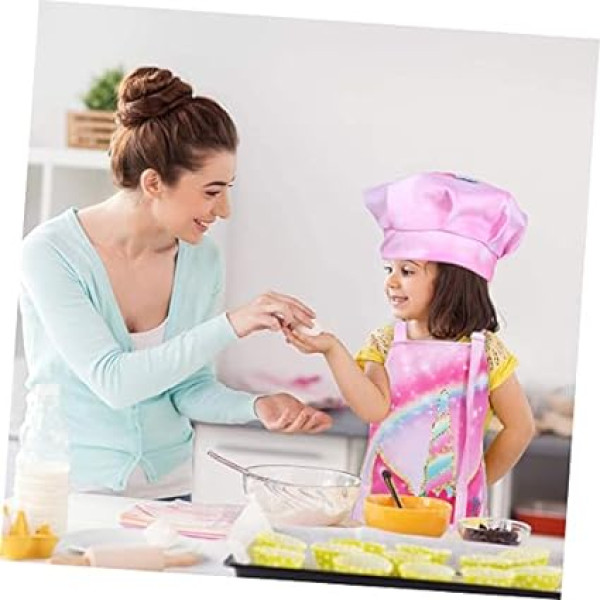 Amosfun 2 Sätze 2 Stk Kinderschürze Einhorn Partykostüm Bastelschürze für Kinder malschürze kinder Kochmützen für Kinder Hauben für Kinder Anzug für Kinder bedruckte schürze kreativer Hut