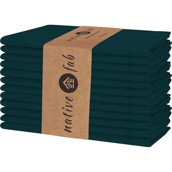 Native Fab Cotton Fabric Napkins Set of 12 46 x 46 cm for Events Wedding Restaurant Regular Home Use Soft Comfortable Machine Washable Reusable Napkins Dark Green