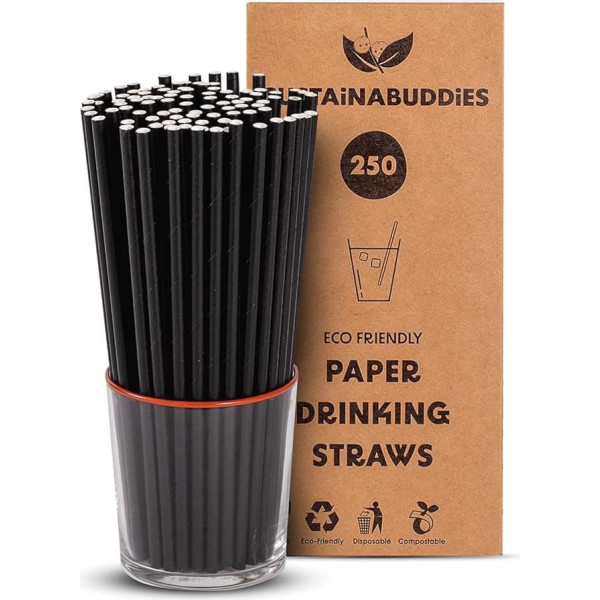 SustainaBuddies 250 x 20 cm mittelgroße Papier-Trinkhalme | 6 mm Durchmesser | umweltfreundliche Einweg-Trinkhalme | ethisch, biologisch abbaubar und kompostierbar | wird nicht durchnässt