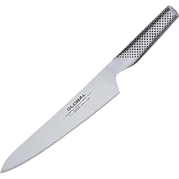 Knife Cut (meat/Vegetable Knife); Product description Fleischmesser zum Portionieren von grossen rohen Fleischstücken ( Rouladen, Schmorsteaks etc.).Global Messer gehören zu den beliebtesten Messern in Deutschlands Gourmetküchen. Die Mischung aus Funktionalität und Schärfe macht das Global Messer zum perfekten Werkzeug für Profiköche.Die Klinge dieser Messer besteht aus Molybdän-Vanadium Stahl- die Griffschalen aus Edelstahl. Zur perfekten Balance sind diese mit Sandkörnern gefüllt. Global Messer halten bei richtiger Pflege bedeutend länger als herkömmliche Messer. Aufgrund des besonderen Stahls und der Erhärtung auf 56° Rockwell C ist der Abrieb bei Global Messern nur sehr gering. So hält ein Global Messer selbst bei Profi-Köchen einLeben lang - richtige Pflege vorausgesetzt.Die richtige Pflege ist denkbar einfach: Nach jeder Anwendung unter fliessend lauwarmen Wasser mit einem Schwamm oder Tuch abwaschen und kurz abtrocknen. Das ist schon alles. Global Messer dürfen, wie jedes gute Messer, nicht in den Geschirrspüler und auch nicht in der mit Wasser gefüllten Spüle liegen.Global- Messer ihr Geheimnis ist die Schärfe!; Product description Fleischmesser zum Portionieren von grossen rohen Fleischstücken ( Rouladen, Schmorsteaks etc.).Global Messer gehören zu den beliebtesten Messern in Deutschlands Gourmetküchen. Die Mischung aus Funktionalität und Schärfe macht das Global Messer zum perfekten Werkzeug für Profiköche.Die Klinge dieser Messer besteht aus Molybdän-Vanadium Stahl- die Griffschalen aus Edelstahl. Zur perfekten Balance sind diese mit Sandkörnern gefüllt. Global Messer halten bei richtiger Pflege bedeutend länger als herkömmliche Messer. Aufgrund des besonderen Stahls und der Erhärtung auf 56° Rockwell C ist der Abrieb bei Global Messern nur sehr gering. So hält ein Global Messer selbst bei Profi-Köchen einLeben lang - richtige Pflege vorausgesetzt.Die richtige Pflege ist denkbar einfach: Nach jeder Anwendung unter fliessend lauwarmen Wasser mit einem Schwamm oder Tuch abwaschen und kurz abtrocknen. Das ist schon alles. Global Messer dürfen, wie jedes gute Messer, nicht in den Geschirrspüler und auch nicht in der mit Wasser gefüllten Spüle liegen.Global- Messer ihr Geheimnis ist die Schärfe!; Fleischmesser zum Portionieren von grossen rohen Fleischstücken ( Rouladen, Schmorsteaks etc.).Global Messer gehören zu den beliebtesten Messern in Deutschlands Gourmetküchen. Die Mischung aus Funktionalität und Schärfe macht das Global Messer zum perfekten Werkzeug für Profiköche.Die Klinge dieser Messer besteht aus Molybdän-Vanadium Stahl- die Griffschalen aus Edelstahl. Zur perfekten Balance sind diese mit Sandkörnern gefüllt. Global Messer halten bei richtiger Pflege bedeutend länger als herkömmliche Messer. Aufgrund des besonderen Stahls und der Erhärtung auf 56° Rockwell C ist der Abrieb bei Global Messern nur sehr gering. So hält ein Global Messer selbst bei Profi-Köchen einLeben lang - richtige Pflege vorausgesetzt.Die richtige Pflege ist denkbar einfach: Nach jeder Anwendung unter fliessend lauwarmen Wasser mit einem Schwamm oder Tuch abwaschen und kurz abtrocknen. Das ist schon alles. Global Messer dürfen, wie jedes gute Messer, nicht in den Geschirrspüler und auch nicht in der mit Wasser gefüllten Spüle liegen.Global- Messer ihr Geheimnis ist die Schärfe!