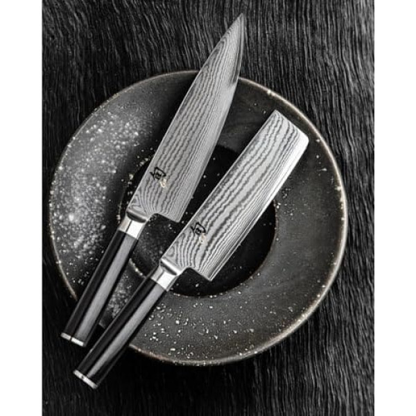 Kai Shun DMS-230 Gift set containing DM-701 15cm Utility Knife & DM-702 16cm Santoku; Product description Jedes Shun-Messer erhält durch Veredelung der natürlich-schönen Damaszener-Maserung einen einzigartigen und individuellen Charakter. Damit wird jedes einzelne Shun-Messer zum unverwechselbaren Einzelstück - zu einem Kunstwerk, vereint aus Handwerk, Technik und Design. Die aus der japanischen Samuraischwert Schmiedekunst entstandene Technik zur Fertigung feinster Kochmesser adaptiert die Shun Kochmesserserie auch für die Produktion westlicher Klingenformen.; Product description Jedes Shun-Messer erhält durch Veredelung der natürlich-schönen Damaszener-Maserung einen einzigartigen und individuellen Charakter. Damit wird jedes einzelne Shun-Messer zum unverwechselbaren Einzelstück - zu einem Kunstwerk, vereint aus Handwerk, Technik und Design. Die aus der japanischen Samuraischwert Schmiedekunst entstandene Technik zur Fertigung feinster Kochmesser adaptiert die Shun Kochmesserserie auch für die Produktion westlicher Klingenformen.; Jedes Shun-Messer erhält durch Veredelung der natürlich-schönen Damaszener-Maserung einen einzigartigen und individuellen Charakter. Damit wird jedes einzelne Shun-Messer zum unverwechselbaren Einzelstück - zu einem Kunstwerk, vereint aus Handwerk, Technik und Design. Die aus der japanischen Samuraischwert Schmiedekunst entstandene Technik zur Fertigung feinster Kochmesser adaptiert die Shun Kochmesserserie auch für die Produktion westlicher Klingenformen.