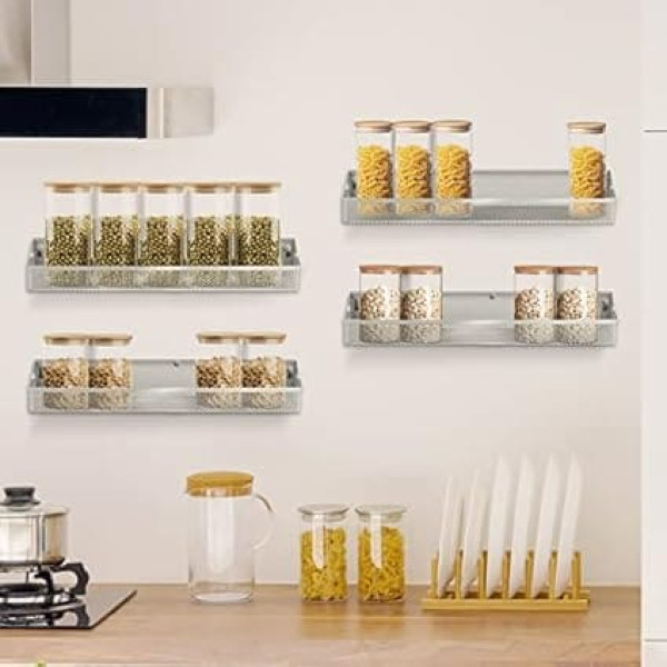 Spice holder: Thanks to 4 single-row spice racks, the spice rack set is characterised by its superior flexibility; hang the spice organiser together or individually and vary the distance between the spice rack surfaces as needed. Large capacity: each hanging shelf can hold glasses up to 4 cm in diameter, a total of up to 40 glasses. Easy to install: the installation of the kitchen organiser rack set is super simple, find the included hanging devices for flexible suspension and a secure fit on most walls. MULTI PURPOSE SPICE RACK: The spice rack set is completely sturdy, stable and durable, ideal for bathroom essentials, nail polish, essential oils, medicine, cosmetics, craft supplies, gadgets and more. Package includes: set of 4 spice racks including mounting hardware; size 39 x 6.9 x 6 cm; spice jars are not included. › See more product details