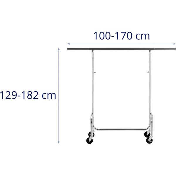 100-170 cm regulējams stāvošs drēbju pakaramais uz riteņiem