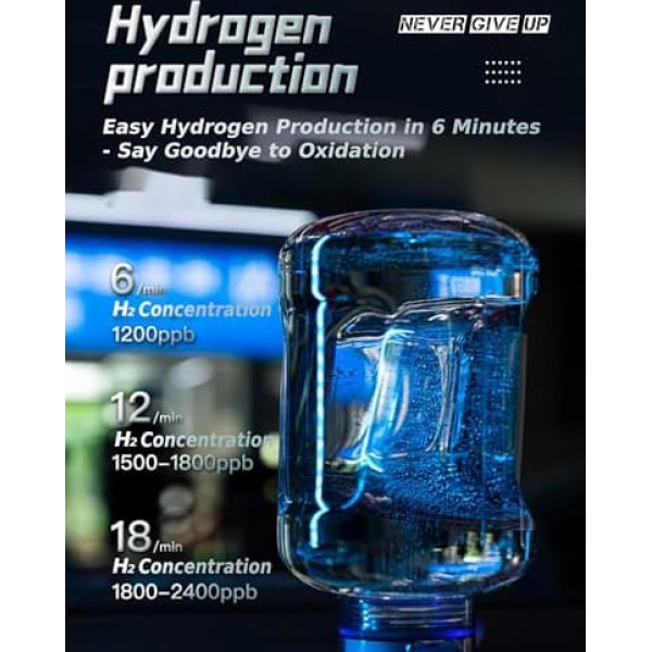 SPE membrane technology: with solid polymer electrolyte membrane technology (SPE) that separates hydrogen and oxygen in the water and then releases the hydrogen back into the water to produce hydrogen enriched water. Hydrogen rich water: The hydrogen water bottle is not only a water container, but a generator that converts normal water into hydrogen-rich water, known for its potential antioxidant and health benefits. Large capacity: With a large capacity of 1.5 litres, the hydrogen water bottle can produce an abundant amount of hydrogen-rich water in one filling to meet your daily hydration needs. 【Benefits of Hydrogen Absorption】: Improves athletic performance, reduces fatigue and improves exercise efficiency, also helps promote metabolism, improve sleep quality and promote overall well-being. Easy to use: the hydrogen generator is portable and user-friendly. Simply add a suitable water source, activate the generator, and within moments you have hydrogen-enriched water ready to eat.