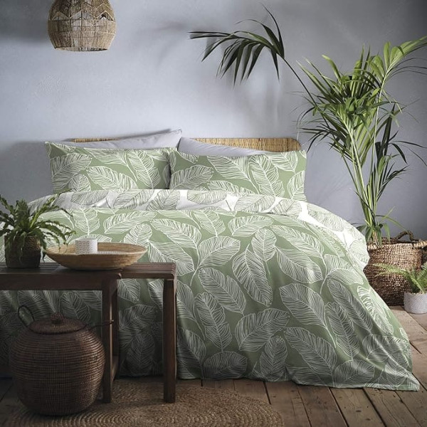 Brighten up your living space with the Botanical Matteo Bedding Set. The durable polycotton fabric features a fully reversible design with an inverted color. Transform your room into a zen garden with the matching curtains and cushions. Fusion offers an affordable collection of fashionable bedding, pillows and curtains to brighten up any room and match any bag. To fit UK Standard Double Duvet Size: 200cm Width x 200cm Drop Pillowcase 76cm x 48cm Material: 52% Polyester, 48% Cotton (130 Thread Count) Care instructions: wash at 40°C, tumble dry low. Wash and iron inside out. Iron with a damp cloth. Includes 1 x UK Double Duvet Cover and 2 x Pillow Cases