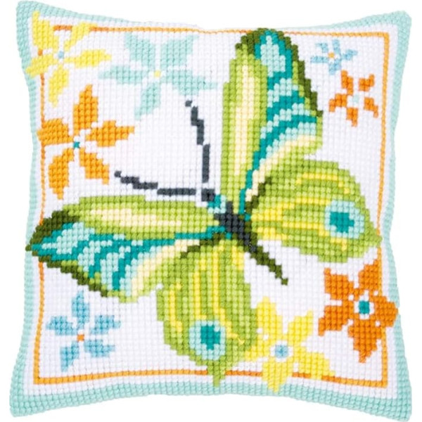 Vervaco Kreuzstichkissen Schmetterling Grün Kreuzstickpackung vorgedruckt, Stramin, weiß, 40 x 40 x 0,3 cm