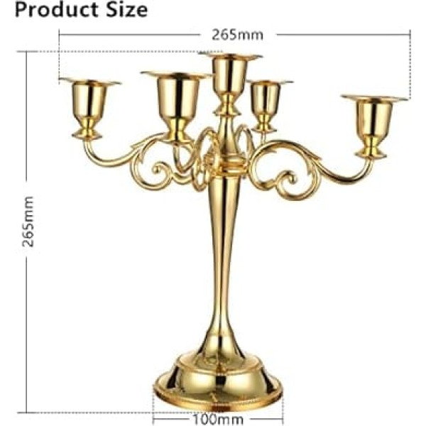 Elegant candelabra: stylish design with surface coating and ruffled vine holder creates a luxurious feel and gives your room an elegant and romantic atmosphere. Great ornaments for birthday, candlelight dinner, dining room, living room, study and bar. High-quality metal decoration: the taper candle stands are made of high-quality zinc alloy, which makes it durable and stable. The soft seal bottom protects the table and the fine shine makes it an art. Manual measurement: approx. Width 10.4 \; Product description Description: Candle holder with 5 arms in vintage style and elegant design, easy for you to match with all furniture. Ideal for window sills, tabletop and fireplace displays. This candle base is also a great gift for housewarming, holiday, birthday, party, wedding. Specifications: Material: zinc alloy. Color: Black, Bronze, Gold, Silver (optional) Height: 26.5 cm. Width: 26.5 cm. Base diameter: 10 cm. Package includes: 1 x 5-arm candle holder (candles not included); Product description Description: Candle holder with 5 arms in vintage style and elegant design, easy for you to match with all furniture. Ideal for window sills, tabletop and fireplace displays. This candle base is also a great gift for housewarming, holiday, birthday, party, wedding. Specifications: Material: zinc alloy. Color: Black, Bronze, Gold, Silver (optional) Height: 26.5 cm. Width: 26.5 cm. Base diameter: 10 cm. Package includes: 1 x 5-arm candle holder (candles not included); Description: Candle holder with 5 arms in vintage style and elegant design, easy for you to match with all furniture. Ideal for window sills, tabletop and fireplace displays. This candle base is also a great gift for housewarming, holiday, birthday, party, wedding. Specifications: Material: zinc alloy. Color: Black, Bronze, Gold, Silver (optional) Height: 26.5 cm. Width: 26.5 cm. Base diameter: 10 cm. Package includes: 1 x 5-arm candle holder (candles not included)