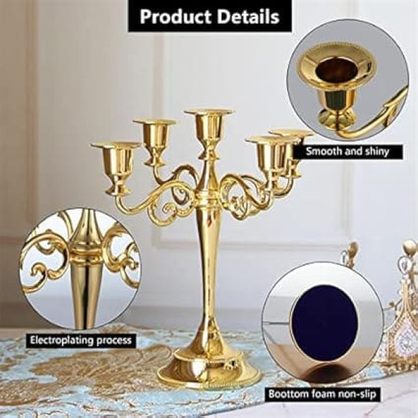 Coptiner Candle Holder 5 Arms Metal Candle Holder for Taper Candles, Vintage Candelabra Decorative Candle Holder for Wedding Candle Light Dinner Party Table Tops Home Decoration