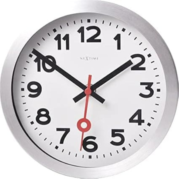 NeXtime Designer Wanduhr 3998 Station, Klassische Bahnhofsuhr Aber Mini (19 cm), Alu-Gehäuse, Ziffernblatt weiß, Ø 19 cm
