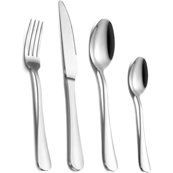 6 PEOPLE CUTLERY SET Our cutlery set includes 6 dinner knives, 6 dinner forks, 6 dinner spoons, 6 teaspoons, which are suitable for most families of 6 people. PREMIUM QUALITY CUTLERY SET Made of high quality stainless steel, 24 pieces cutlery set is non toxic and healthy for everyone. Pleadind flatware set is comfortable to hold for adults and children as it has a nice weight and perfect size to provide good grip. Exquisite craftsmanship. The matte finish and elegant curve design of the cutlery set make it elegant and delicate. Each piece is ergonomically designed with every detail and viewing angle. DISHWASHER SAFE The flatware set is dishwasher safe, also easy to wash by hand, your proper care will last this 24 piece cutlery set for years and always look as good as new. Useful Flatware Set Nice flatware set ideal for everyday use at home, restaurant, entertaining. Perfect gift choice for Christmas, Thanksgiving and other festivals.