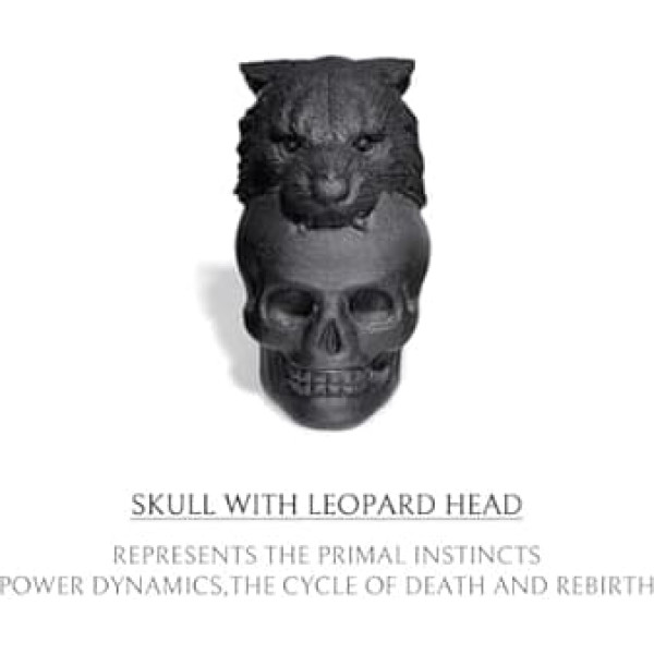 DESIGNER NOTES The design concept of this sculpture revolves around the captivating images of a leopard head compressing a human skull resulting in a thought-provoking and visually striking work of art. Symbolically, this design concept explores the juxtaposition between predatory fish and prey, the cycle of life and death, and the primal instincts inherent in all living beings. PREMIUM GEMSTONE Made of matte Brazilian obsidian, the head sculpture showcases the jet black color that characterizes this volcanic glass, while the non-reflective surface adds a sense of understated elegance and mystery to the overall design. The intricate details of the leopard's facial features, such as its intense eyes, sharp teeth and textured fur, are carefully crafted to convey a sense of realism and strength. EXQUISITE SIZE Measuring 1.54 x 1.38 x 2.7 inches, the skull ornament is the perfect size to adorn your desk, shelf or any display area and will become the focal point of your room. VERSATILE DECORATION Integrating skull decoration into your space or personal collection can act as a beacon of spiritual resonance, promoting positive atmosphere, inspiration, and spiritual exploration. Whether in your home or as a focal point in your meditation room, these skulls effortlessly combine aesthetics with profound spiritual depth. YOUR SATISFACTION IS OUR PRIORITY - As a Swedish brand, we have established an after-sales center in Stockholm to ensure exceptional customer care. Our team strives to provide fast and reliable help because we understand that perfection is a journey. We are proud to have won a loyal fan base of quality-conscious customers in Europe. Trust AWNL to exceed expectations with an exceptional experience.; Product description Obsidian Crystal Jaguar Guardian Skull Sculpture; Product description Obsidian Crystal Jaguar Guardian Skull Sculpture; Obsidian Crystal Jaguar Guardian Skull Sculpture