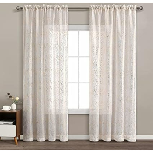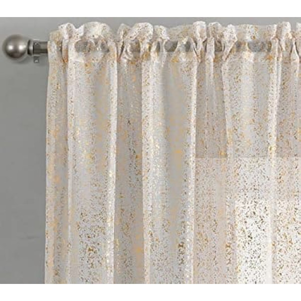 TERLYTEX White and Gold Sheer Curtains, Metallic Sparkle Gold Sheer Curtains 84 Inch Length for Living Room, 2 Panels, Gold and White