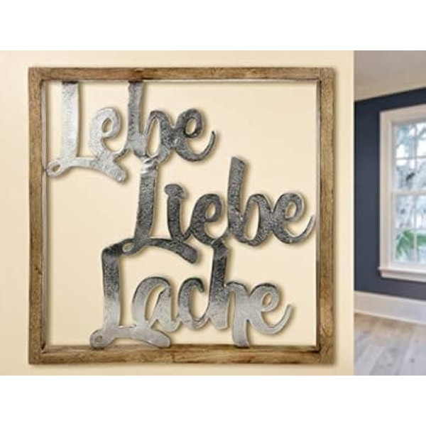 With a height of 60 cm, a width of 60 cm and a depth of 3.5 cm, this wooden frame is a great piece of jewellery. The XXL relief is equipped with 3 hooks for hanging, for a secure hold. The saying Lebe, Liebe, Lache from GILDE Handwerk made of aluminium is framed in a mango wood frame, a wall object of a special kind. An inspiration that should become the motto of life. Thanks to the combination of two materials, this beautiful saying made of fine metal and sustainable wood is unique. The cast aluminium is a very old craft and an art in itself. For those who love something special. Are you still looking for an extraordinary gift? Original gifts show the recipient your appreciation and are at the same time lasting memories. Nice gift for your wife, husband, grandma and grandpa, best friend, best friend on various occasions such as birthday, wedding, anniversary, Christmas, Mother's Day or Father's Day.