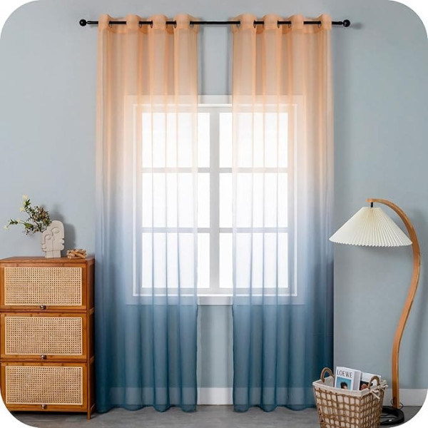 Gradient Color Design:Simple and breathable curtains, with special gradient color, make the room more colorful and vivid. They allow sun rays to filter and facilitate air circulation, making the room bright and ventilated. INSTALLATION Each panel is equipped with 8 metal grommets for the curtain rod to be inserted into. It is recommended to use poles with a diameter of less than 38 mm. DIMENSIONS The set includes 2 curtain panels, each measuring 55\; Product description Simple and lightweight curtain with special gradient colour, ideal for beautifying your home and creating a bright and comfortable ambience. The lightweight and breathable 100% polyester fabric allows light to pass through, illuminates the room and facilitates air circulation, leaving the room fresh and ventilated. Can be used separately or with blackout curtains to block a larger amount of light. WASHING This curtain can be washed by hand or in the washing machine on a gentle cycle at a temperature not exceeding 30 °C. It is strongly not recommended to wash the item together with garments that have edges or sharp spots that may fray the fabric. It is not recommended to iron the curtain. Instead, we recommend that you hang them vertically when wet. If necessary, iron with a damp cloth at low temperature. To better maintain the curtain, we do not recommend bleaching or tumble drying. Dimensions and colours: the item is available in 5 sizes (70 x 138/148 cm, 70 x 238 cm, 140 x 138/148 cm, 140 x 238 cm and 140 x 275 cm) and different colour shades depending on taste and needs. ATTENTION: The length of the curtain is the distance between the top hem to the pocket and the bottom hem of the curtain. Since the size of the curtain is measured by hand, the size of the actual item you received could be slightly different from the size above. Please allow a deviation of 3-5 cm. In any case, we always recommend choosing a curtain that is slightly wider and longer than your needs as the polyester fabric shrinks after washing. Due to lighting effects and screen settings, the colour of the product images may differ from the actual colour of the product.; Product description Simple and lightweight curtain with special gradient colour, ideal for beautifying your home and creating a bright and comfortable ambience. The lightweight and breathable 100% polyester fabric allows light to pass through, illuminates the room and facilitates air circulation, leaving the room fresh and ventilated. Can be used separately or with blackout curtains to block a larger amount of light. WASHING This curtain can be washed by hand or in the washing machine on a gentle cycle at a temperature not exceeding 30 °C. It is strongly not recommended to wash the item together with garments that have edges or sharp spots that may fray the fabric. It is not recommended to iron the curtain. Instead, we recommend that you hang them vertically when wet. If necessary, iron with a damp cloth at low temperature. To better maintain the curtain, we do not recommend bleaching or tumble drying. Dimensions and colours: the item is available in 5 sizes (70 x 138/148 cm, 70 x 238 cm, 140 x 138/148 cm, 140 x 238 cm and 140 x 275 cm) and different colour shades depending on taste and needs. ATTENTION: The length of the curtain is the distance between the top hem to the pocket and the bottom hem of the curtain. Since the size of the curtain is measured by hand, the size of the actual item you received could be slightly different from the size above. Please allow a deviation of 3-5 cm. In any case, we always recommend choosing a curtain that is slightly wider and longer than your needs as the polyester fabric shrinks after washing. Due to lighting effects and screen settings, the colour of the product images may differ from the actual colour of the product.; Simple and lightweight curtain with special gradient colour, ideal for beautifying your home and creating a bright and comfortable ambience. The lightweight and breathable 100% polyester fabric allows light to pass through, illuminates the room and facilitates air circulation, leaving the room fresh and ventilated. Can be used separately or with blackout curtains to block a larger amount of light. WASHING This curtain can be washed by hand or in the washing machine on a gentle cycle at a temperature not exceeding 30 °C. It is strongly not recommended to wash the item together with garments that have edges or sharp spots that may fray the fabric. It is not recommended to iron the curtain. Instead, we recommend that you hang them vertically when wet. If necessary, iron with a damp cloth at low temperature. To better maintain the curtain, we do not recommend bleaching or tumble drying. Dimensions and colours: the item is available in 5 sizes (70 x 138/148 cm, 70 x 238 cm, 140 x 138/148 cm, 140 x 238 cm and 140 x 275 cm) and different colour shades depending on taste and needs. ATTENTION: The length of the curtain is the distance between the top hem to the pocket and the bottom hem of the curtain. Since the size of the curtain is measured by hand, the size of the actual item you received could be slightly different from the size above. Please allow a deviation of 3-5 cm. In any case, we always recommend choosing a curtain that is slightly wider and longer than your needs as the polyester fabric shrinks after washing. Due to lighting effects and screen settings, the colour of the product images may differ from the actual colour of the product.
