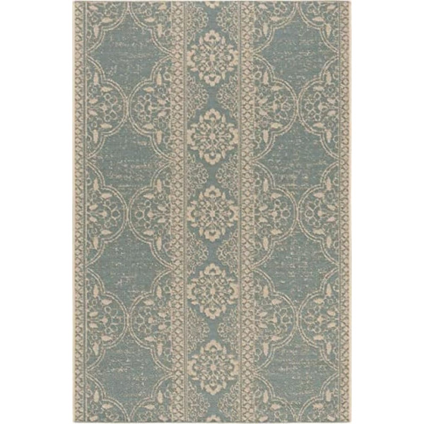 SAFAVIEH Beachhouse Collection Transitional Rug Indoor & Outdoor Short Pile Cream and Aqua 201 x 290 cm