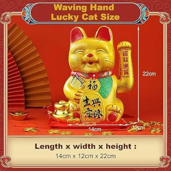 Pilipane Lucky Cat Waving Golden Ceramic Cat 9 Inch Chinese Lucky Smiley Feng Shui Statue with Red Fabric Pad for Home Office Reception Decoration and Car