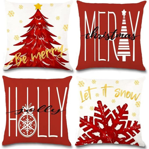 Package: you will receive 4 pieces Christmas pillow covers, each pillow cover measures 18 x 18 inches/ 45 x 45 cm, the cover pillows are sold without inserts and single-sided prints(no printing on the back). Design: these winter pillow covers feature unique Christmas elements in bright red, snowflakes, Christmas trees and more, classic patterns combined with gold letters, perfect for decorating your party for a strong Christmas atmosphere! Material: Christmas cushion cover made of 100% polyester linen, soft and skin-friendly, no fading and no wear, can be used for indoor and outdoor Christmas furniture decoration. WASHABLE & COLORFUL Christmas pillow covers have hidden zippers for easy on and off pillow covers. It can be washed in cold water and dried like any other daily items, the color will remain new and will not fade. Winter decoration: Merry Christmas pillow covers are perfect decorations for Christmas. Suitable for living room, bed, bedroom, sofa, car, seat, floor, bench, office, cafe, party and other indoor and outdoor places. Xmas pillowcase decorations can create a warm Christmas holiday atmosphere for you, get a lot of compliments and make a lovely gift for your family and friends.