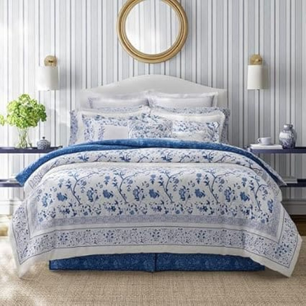 Laura Ashley - Komplettes Bettwäsche-Set, Baumwoll-Bettwäsche mit passenden Kissenbezügen und Bettrock, stilvolle Heimdekoration (Charlotte Blue, voll)