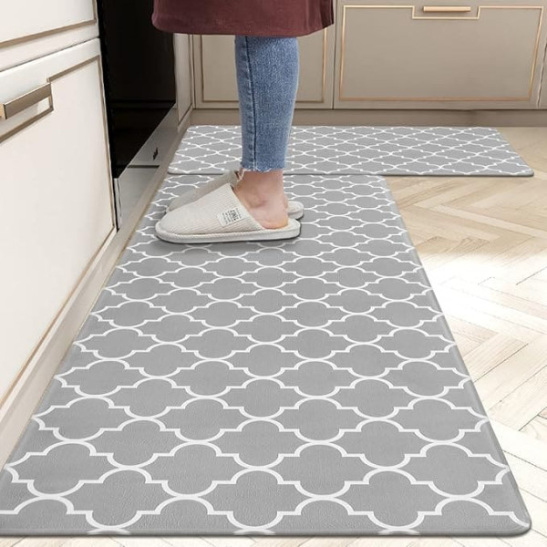 Pauwer 2 Piece Anti Fatigue Kitchen Mats Kitchen Floor Mat Comfort Heavy Standing Mats Waterproof Non-Slip Kitchen Rugs Indoor Outdoor (Vierpass Grey, 44 cm x 70 cm + 44 cm x 120 cm)