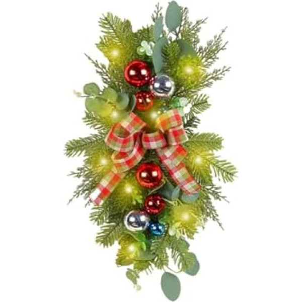 BIOSA Weihnachtsdekoration, Treppenkranz mit Seidenband, Weihnachtssimulationsgirlande, glänzende Wand, Fenster, hängende Verzierung, vorbeleuchtete Treppen-Swag-Verzierung for Heimdekoratio