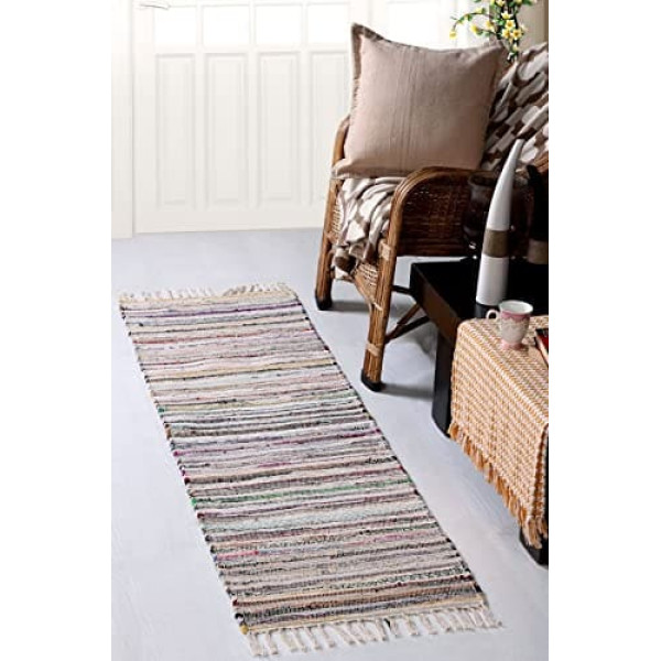 Festive carpet assortment – these rugs are great for adding a splash of colour to your home or camping adventure. They are made from recycled fabric and are finished with multi-coloured stitching that finishes at each edge with a hand-knotted fringe ribbon. The festival rugs have a high quality dense weave that gives them an excellent finish. Ideal for corridors, kitchens and living rooms – the flat weave style is made on a traditional hand loom, and there are no machines in the game. Each rug is unique as no two patterns, materials or colours are identical. Therefore, please consider the photos as representative, as each rug is peculiar. Carpet care: the finished rug is reversible, and can be folded or rolled up. It can be shaken or spot cleaned if necessary. Many customers report that the rugs can be washed separately in cold water. If you place the rug on a hard floor, you may need a carpet net or similar to fix it. Make sure that the paint is not transferred, especially if the carpet becomes damp. Environmentally friendly and from ethical origin – made by one of our favourite GoodWeave suppliers, which belongs to an exclusive network of certified producers. Each rug is individually numbered, so you can be sure that it is unique and comes from an ethical source. Our certification fees help fund educational centers for children and teenagers. These beautiful rugs are made from recycled fabric scraps that occur during clothing production. By weaving them into a new product, we contribute to waste prevention.