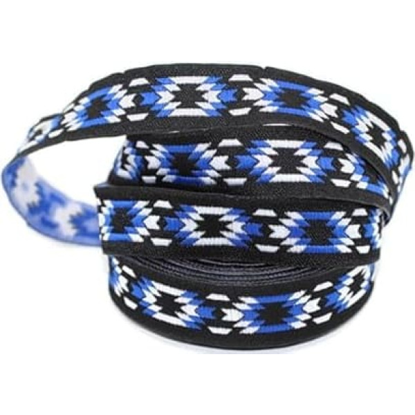 20279 V2 Mosaikband mit Jacquard-Bordüre, bestickter Bordüre, Stoffbordüre, 2 cm breit, 2 cm breit, blau, weiß, schwarz, Mosaikband, bestickt, Bordüre, Stoffbordüre, 9,7 m