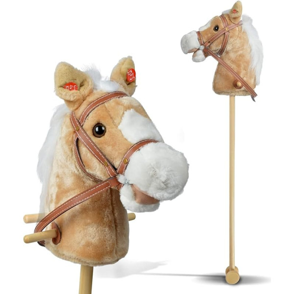 Design: A beautiful design and high-quality workmanship make this cute hobby horse a child's absolute dream. The hobby horse toy is a great gift idea. Cosy and soft: With handles and reins on the soft plush head that sits on a 65 cm long wooden pole equipped with practical wooden castors. The perfect companion for little adventurers. Features: If you press the ear of the cuddly horse, you will hear 2 sounds: a gallop and a whinny. As cute as a button: With its faithful button eyes and the magical sounds in the ear, the hobby horse carries your child over hills and dales. Branded product: Each toy hobby horse from Pink Papaya is handmade and unique. Hobby horses for boys and girls, available in many exclusive designs. › See more product details