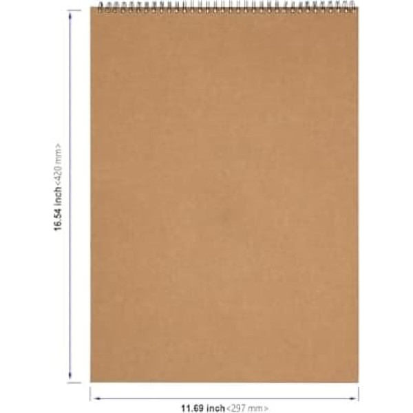 Well made – The A3 sketchbook is made of 160 g/m² drawing paper, which can withstand normal tension and does not tear easily. The paper is a creamy white color instead of a reflective pure white so it won't glare. A thick, brown kraft cover protects the inner pages. Spiral Bound The kraft paper sketchbook adopts metal spiral binding (fold up) to hold the top pages together. So you can easily flip the pages of the sketchbook to the page and tear off each page. There are perforations on the pages of the sketchbook that leave no marks when torn. GREAT VALUE The package includes 5 spiral bound sketchbooks measuring 420x297mm. Each A3 sketchbook has 30 sheets of paper/60 pages, with a large thickness and high quality, providing you with a first-class writing and painting experience. EASY TO CUSTOMIZE Both the cover and inner pages are blank, making them perfect for customizing covers and purposes. You can customize them with stamps, templates and stickers. It is also a good idea to draw or print exquisite patterns on it. MULTI PURPOSE Whether you are a professional artist or someone with a slight interest in art, this artist sketch pad is your ideal choice. Widely used for improvisation and portrait sketching exercises. You can paint freely without being limited by lines. It is also the best gift choice for DIY scrapbooks. › See more product details
