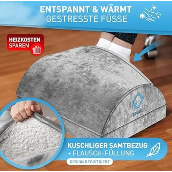 Comfortable comfort: our footrest with foot pocket has been developed for optimal relaxation and offers unparalleled comfort with its cuddly velvet cover and fluffy filling. Say goodbye to discomfort and welcome the soothing support for your tired feet. Ergonomic design: our footrest desk has been specially developed for your well-being and is ergonomically designed to promote correct posture and reduce the strain on your feet and legs. With the Footrest you can put your feet up while sitting in a relaxed and ergonomic position. Height-adjustable: our footstool individually height-adjustable function ensures comfort tailored to your needs, whether in the office, on the sofa or in the home office. This desk footrest is your adaptable companion that ensures comfort anywhere. It is more than just a desk accessory, it is a main source of relaxation. Non-slip: fear of slipping? Don't worry! Our footrest has an extremely durable integral foam with unique non-slip underside that ensures stability and safety even on smooth surfaces. Its non-slip nub structure ensures a firm fit and thus ensures uninterrupted comfort. No more feet: Enjoy warmth and comfort with our footstool. Directly integrated into the design, it keeps your feet warm without the need for additional gadgets. With FLIPLINE warm and cuddly feet are always within reach. › See more product details