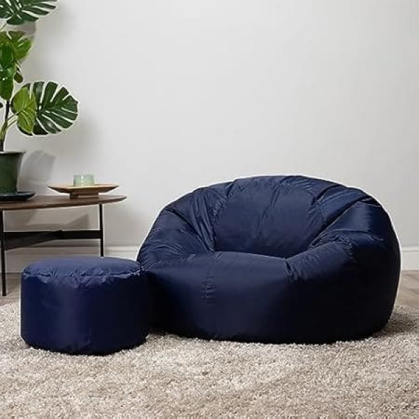 Bean Bag Bazaar Classic Bean Bag with Stool, Dark Blue, Bean Bag for Adults, Large, Bean Bag with Filling, Indoor Outdoor Seat Cushion, Water-Repellent