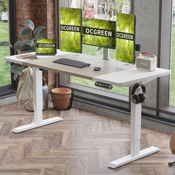 Ocgreen Height-Adjustable Desk, 160 x 76 cm, Height-Adjustable Electric Desk with Table Top, 2-Way Telescope, Standing Desk with Memory Control