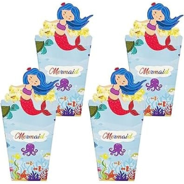 Mermaid Popcorn Containers for Parties: mermaid popcorn boxes are perfect for baby showers, mermaid themes, birthdays, carnival parties Package & Size 12 pieces mermaid party popcorn treat boxes, the size is 3.5\; Product description More about us \; Product description More about us \; More about us \