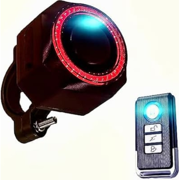 Bicycle theft alarm with sound and light: after turning on the alarm, when the alarm senses a vibration, it will initially emit a drop warning, and if it continues to detect a vibration, the alarm will emit a 110dB alarm, while the red warning light starts flashing, thus scaring off the bad guys. Electric Bicycle Alarm with Wireless Remote Control The remote control can control the switch of the alarm, also the flashing mode of the light can be controlled, the remote control has a powerful wireless range of up to 255 feet. With vehicle search function, easy to find your bike in the parking lot. Waterproof bicycle theft alarm: made of waterproof IP65 material, the alarm can be set with 1-7 sensitivity levels and three different alarm bells (please read the manual for specific operation) Easy installation: equipped with bracket, bracket installation is more suitable for bicycles, electric bicycles, tricycles, which is attached to seat tube, head tube, backrest or other tube. Auto-sensing chip, warning light will automatically light up when passing through a tunnel or during night rides. When you brake or slow down, remind the surrounding pedestrians and drivers with light and sound warning, effectively protect the safety of the car and the driver. › See more product details; Product description Package includes: 1 x alarm (including battery). 1 x remote control (including battery). 1 x USB Type-C cable (charging adapter not included). 1 x accessory for the mounting bracket. 1 x non-slip mat. 2 x cable ties. 1 x USB 5 V cable.; Product description Package includes: 1 x alarm (including battery). 1 x remote control (including battery). 1 x USB Type-C cable (charging adapter not included). 1 x accessory for the mounting bracket. 1 x non-slip mat. 2 x cable ties. 1 x USB 5 V cable.; Package includes: 1 x alarm (including battery). 1 x remote control (including battery). 1 x USB Type-C cable (charging adapter not included). 1 x accessory for the mounting bracket. 1 x non-slip mat. 2 x cable ties. 1 x USB 5 V cable.