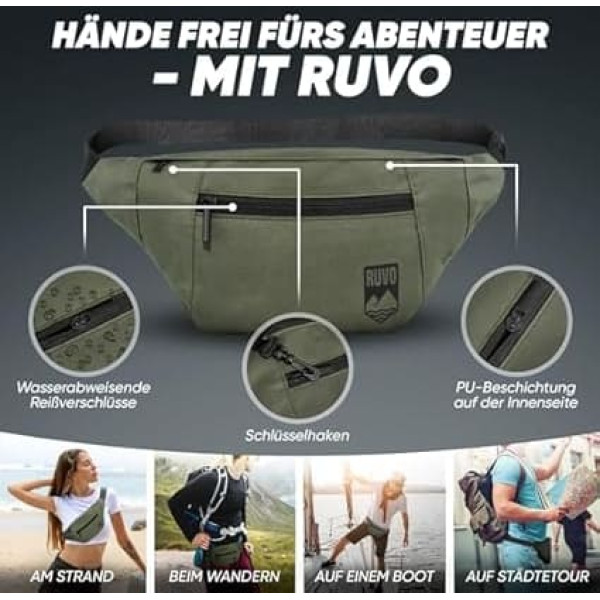 ✔ Bum bag of the highest quality: the bum bag protects your valuables safely inside, thanks to water-repellent fabric and zips. The waist bag is easy to clean and the easy-care materials ensure long durability. All this makes the perfect belt bag. ✔ Maximum space: whether you wear the bum bag around your hips or as a crossbody bag, thanks to it, all the essentials are at hand. Optimal fit with plenty of storage space at the highest quality. Anti-theft thanks to 2 internal zips. Your perfect belt bag for everything you have with you ✔ Suitable for everyone: the minimalist and modern design of the bum bag fits any outfit and guarantees your style. Thanks to the adjustable strap on the belt bag, it fits both young, old, teenagers women and men. ✔ Best choice: You should buy the bum bag because it offers you durability, comfort and style in one product. With this belt bag you get a practical and fashionable accessory for on the go, which is versatile and meets your daily needs. ✔ PROMISE: RUVO means absolute satisfaction to us. Solltest Du daher nicht zufrieden sein, schreib uns bitte hierzu einfach eine kurze Nachricht. We are guaranteed to help you process your request within a short time, even on weekends or holidays. › See more product details