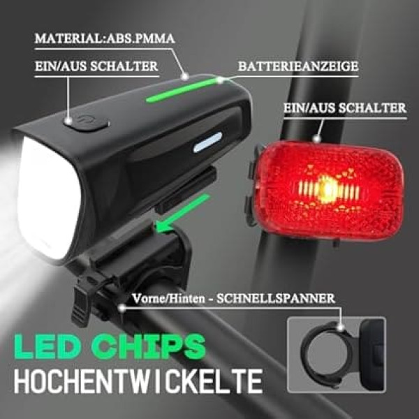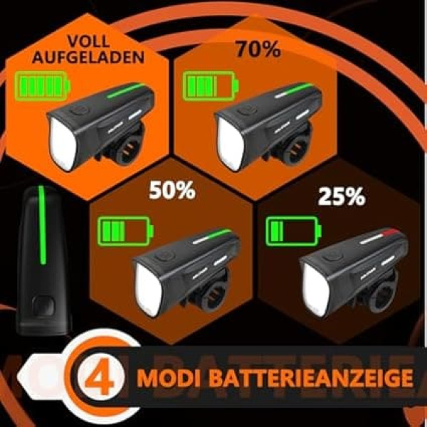 Safety and glare-free design: MUPAS LED bicycle light is StVZO, CE approved and meets all requirements of the road traffic regulations. Good lighting performance: bicycle front light offers three different lighting modes with brightness of 100/75/45 lux, so you can choose the right brightness as needed and ensure optimal visibility. USB charging and power display function: bicycle lamp front equipped with a TYPE C charging cable that allows fast charging from any device with a USB port. The high-quality lithium-ion battery is durable and saves you money. Battery warning function: when the headlamp battery warning indicator lights up (red LED), it needs to be charged immediately. High-quality material and waterproof: bicycle light front is made of high-quality ABS and PPMA material, even when driving on uneven roads, the light does not wobble and fall. IPX5 Waterproof, Note: Do not drive in heavy rain. Easy to use and install: just press the button, the bicycle lights can light up quickly. No installation tools required, very easy and convenient. › See more product details