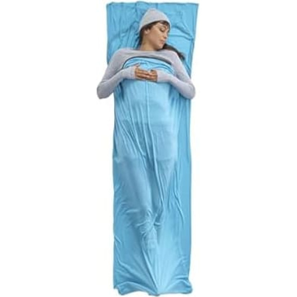Moisture-repellent comfort: thanks to 70% Coolmax EcoMade polyester and 30% Tencel Lyocell, this compact sleeping bag liner effectively wicks moisture away from the skin and gives you dry and restful nights even in damp weather. VERSATILE AND EASY CARE This mummy sleeping bag liner features a drawstring hood and contrasting color channel that makes it easy to use even in low light. For cleaning, you can use conventional detergents. Lightweight and compact: our lightweight travel ticking can be stored compactly in the pack sack made of Ultra-Sil. It is perfect for travel and hiking without unnecessarily straining your luggage. Length: 198 cm. Width: shoulders 80 cm, feet 80 cm. Ideal for trekking tours and travelling: with this sleeping bag ticking you can create a hygienic and comfortable sleeping environment in warm weather. On your adventures, the liner is perfect for changeable temperatures and humidities. Outdoor equipment for maximum freedom: Sea to Summit stands for unlimited adventure spirit and combines state-of-the-art innovations with the convinced commitment to provide the right equipment for maximum independence in any environment. › See more product details; Product description With a rectangular shape, the stretch knit fabric provides freedom of movement, while the Coolmax Ecomade fibers effectively wick away moisture to prevent you from feeling clammy in humid conditions. Throw in an integrated pillowcase and rest assured that you have a hygienic sleeping environment wherever you rest your head.; Product description With a rectangular shape, the stretch knit fabric provides freedom of movement, while the Coolmax Ecomade fibers effectively wick away moisture to prevent you from feeling clammy in humid conditions. Throw in an integrated pillowcase and rest assured that you have a hygienic sleeping environment wherever you rest your head.; With a rectangular shape, the stretch knit fabric provides freedom of movement, while the Coolmax Ecomade fibers effectively wick away moisture to prevent you from feeling clammy in humid conditions. Throw in an integrated pillowcase and rest assured that you have a hygienic sleeping environment wherever you rest your head.