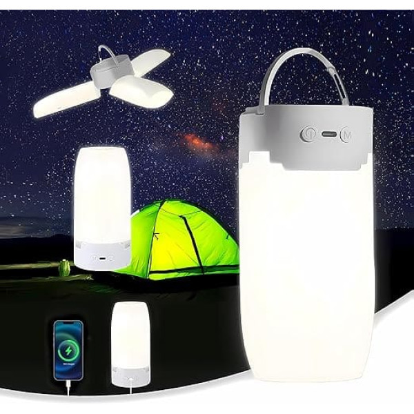 SUPER BRIGHT CAMPING LANTERN Light up your outdoor adventures and indoor activities with equal ease, the owwasd camping lantern is a must have for you! This lantern is perfect for camping utensils, picnics, hiking, fishing and can be used as a practical camping lamp, tent lamp, emergency light, rechargeable light, rechargeable torches, night light, bedroom light, etc SEAMLESS FOLDING DESIGN Enjoy ultimate versatility with a rechargeable camping lantern that folds seamlessly to a compact size. The double-sided design of the lighting plate can be easily disassembled or folded into three parts for easy storage and transport. When you unfold, 3 highly efficient lighting panels illuminate a larger room of 300 ft² Adjustable Brightness & Lighting Modes Adjust your lighting experience with M button: 1 / External luminescence for night light mode, 2 / Inner lights for camping light mode, 3 / And use SOS flashlight function to signal help in emergencies. It has a dimming function, long press the switch button to achieve the desired brightness level LONG LASTING BATTERY Powered by a rugged 5000mAh battery that lasts up to 80 hours after a single charge, this camping lantern is equipped with 96 bright LED bulbs to deliver extremely high 1800 lumens. Stay lit throughout your camping trip without worrying about being left in the dark. And you can use it for power outages MORE HIGHLIGHTS DESIGN With the collapsible handle, you can easily hang the camping light on tent hooks or branches, providing comfortable ceiling lighting. The lantern has a battery level indicator that helps you keep track of the remaining charge and plan your activities accordingly. The IPX4 waterproof rating can withstand rain and splashes and ensures it can be used in all weather conditions › See more product details