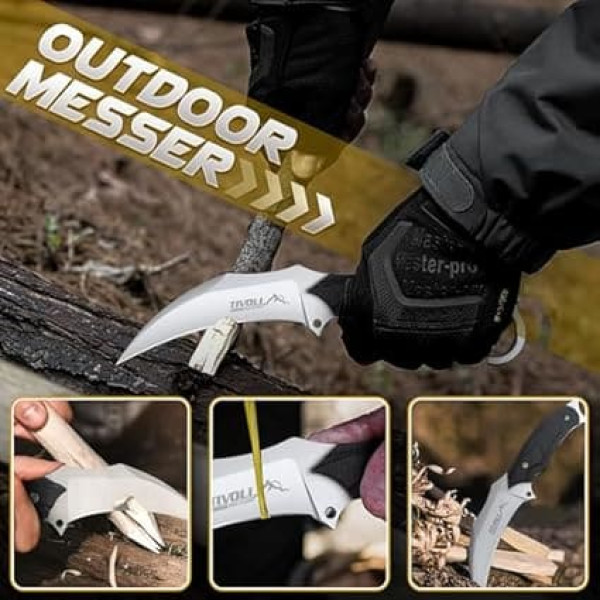 Robust construction: Our camping knife is made from one piece of steel and has a continuous tang construction that makes it extremely robust. Both the blade and handle of the knife are extremely stable and durable, making it ideal for long-term use. Non-slip G10 handle: the survival knife is equipped with an ergonomic G10 handle that is carefully crafted and provides a comfortable grip. The handle adapts perfectly to most hands and allows for safe handling, even in bad weather during outdoor activities Portable outdoor knife with a blade thickness of 4 mm, the outdoor knife is ready to handle any task effortlessly. For added security, a high-quality sheath is included in which the knife can be safely stored - perfect for travel or camping. Multifunctional survival knife. The TIVOLI belt knife is a versatile outdoor knife that is easy to transport. Whether collecting mushrooms or grilling meat or fish over the open campfire, this belt knife proves to be an extremely practical companion. › See more product details