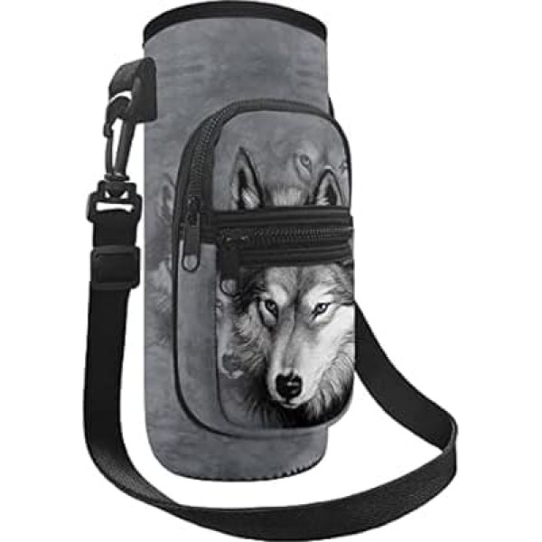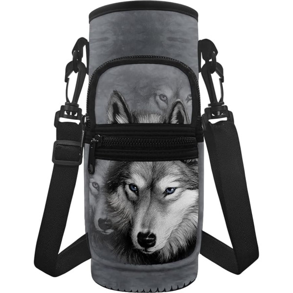 chaqlin Tierwolf Water Bottle Tote Bags for Women Men Grey Wolf Water Bottle Holder Sports Water Bottle Cover Insulated Shoulder Bag for Kids Adults