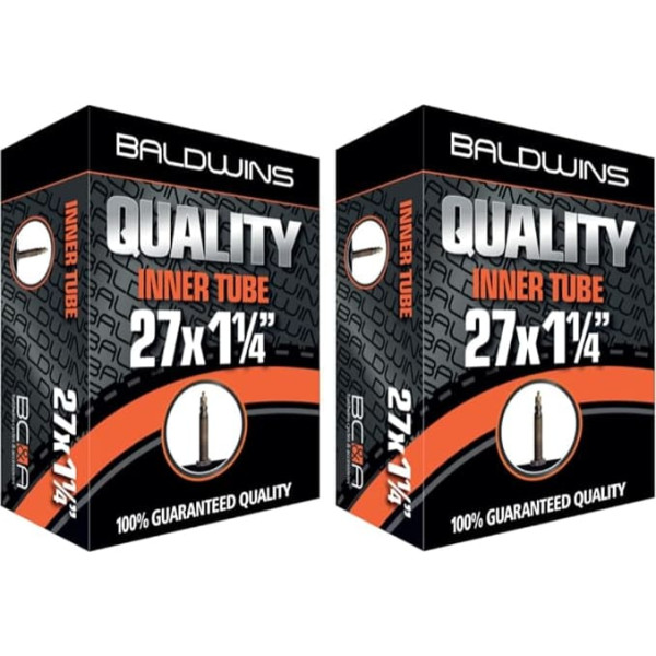 Doppelpack Fahrradschläuche passend für Reifengrößen 27\; Product description Doppelpack Fahrradschläuche passend für Reifengrößen 27 Zoll x 1-1/8, 27 Zoll x 1-1/4, 27 Zoll x 1-3/8 Reifengrößen – 35 mm langes, hochwertiges präzisionsgefertigtes Presta-/Französischventil mit verstärktem Kragen und Kunststoff-Staubkappe. Hergestellt aus hochdurchstoßfestem Butylkautschuk. Schläuche werden in Großpackung. Lieferung, die Baldwins gedruckt Die Box auf den Fotos dient nur zur Veranschaulichung und ist nicht im Lieferumfang enthalten; Product description Doppelpack Fahrradschläuche passend für Reifengrößen 27 Zoll x 1-1/8, 27 Zoll x 1-1/4, 27 Zoll x 1-3/8 Reifengrößen – 35 mm langes, hochwertiges präzisionsgefertigtes Presta-/Französischventil mit verstärktem Kragen und Kunststoff-Staubkappe. Hergestellt aus hochdurchstoßfestem Butylkautschuk. Schläuche werden in Großpackung. Lieferung, die Baldwins gedruckt Die Box auf den Fotos dient nur zur Veranschaulichung und ist nicht im Lieferumfang enthalten; Doppelpack Fahrradschläuche passend für Reifengrößen 27 Zoll x 1-1/8, 27 Zoll x 1-1/4, 27 Zoll x 1-3/8 Reifengrößen – 35 mm langes, hochwertiges präzisionsgefertigtes Presta-/Französischventil mit verstärktem Kragen und Kunststoff-Staubkappe. Hergestellt aus hochdurchstoßfestem Butylkautschuk. Schläuche werden in Großpackung. Lieferung, die Baldwins gedruckt Die Box auf den Fotos dient nur zur Veranschaulichung und ist nicht im Lieferumfang enthalten