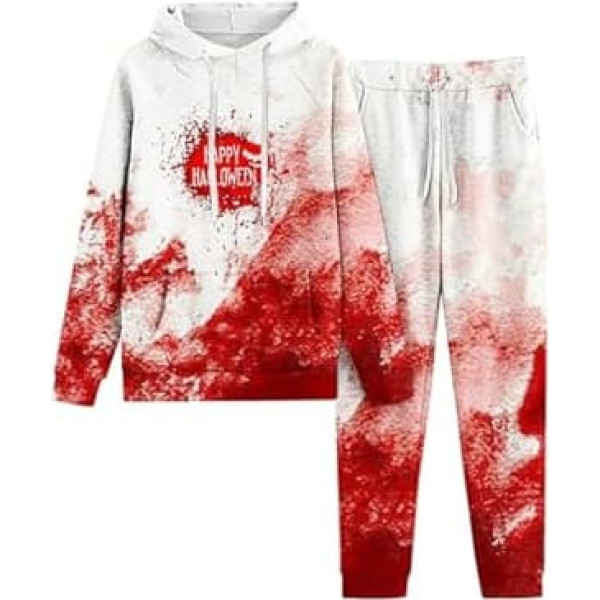 Eauptffy Women's Sports Suit Set, Hoodies and Jogging Bottoms, Hoody Set Horror Bloody Jogging Bottoms Set 2-Piece Hooded Tracksuit Set Casual Loose Leisure Suit Fashionable 2024 Sports Outfit Running